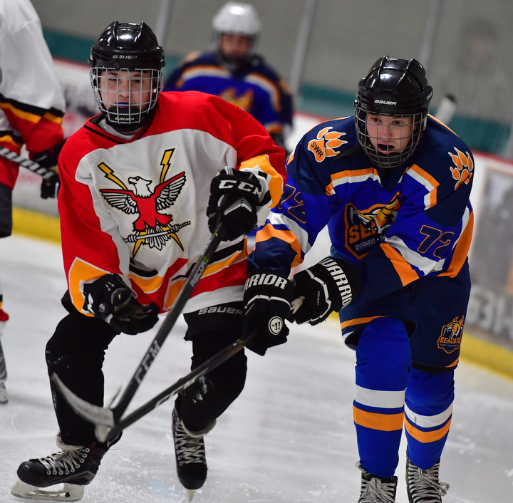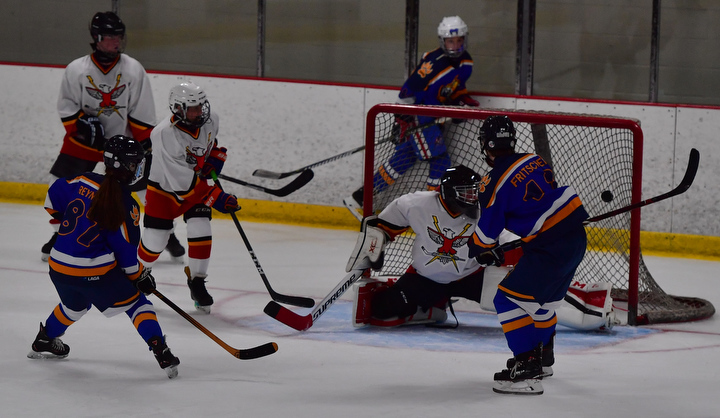 The team includes one girl: Riverhead’s Courtney Reynolds. The eighth-grade forward wasted no time making her presence felt, scoring a goal in the first period of Saturday’s game to put the Seacats ahead 2-0.