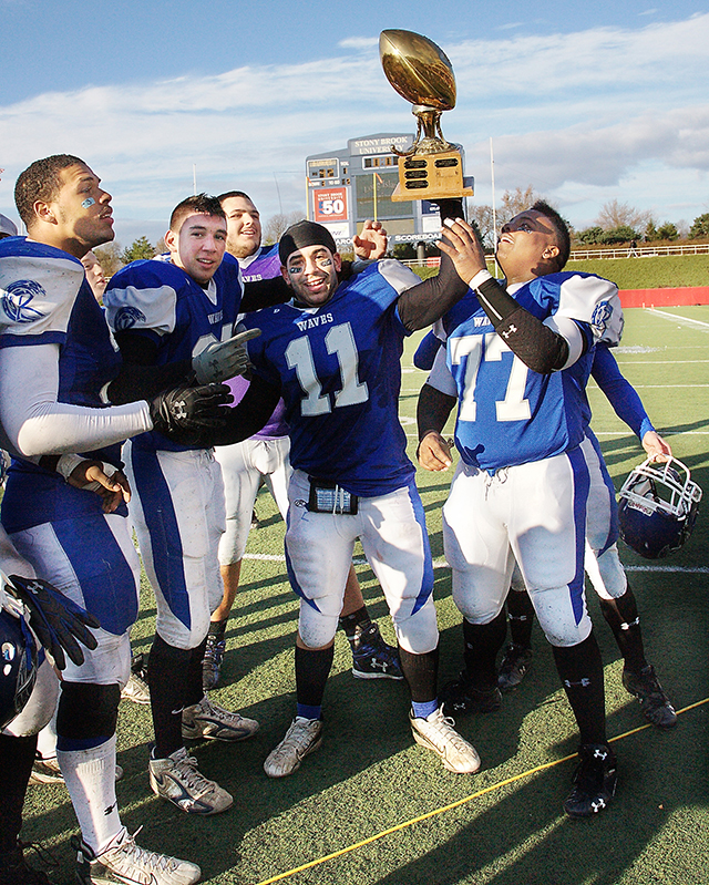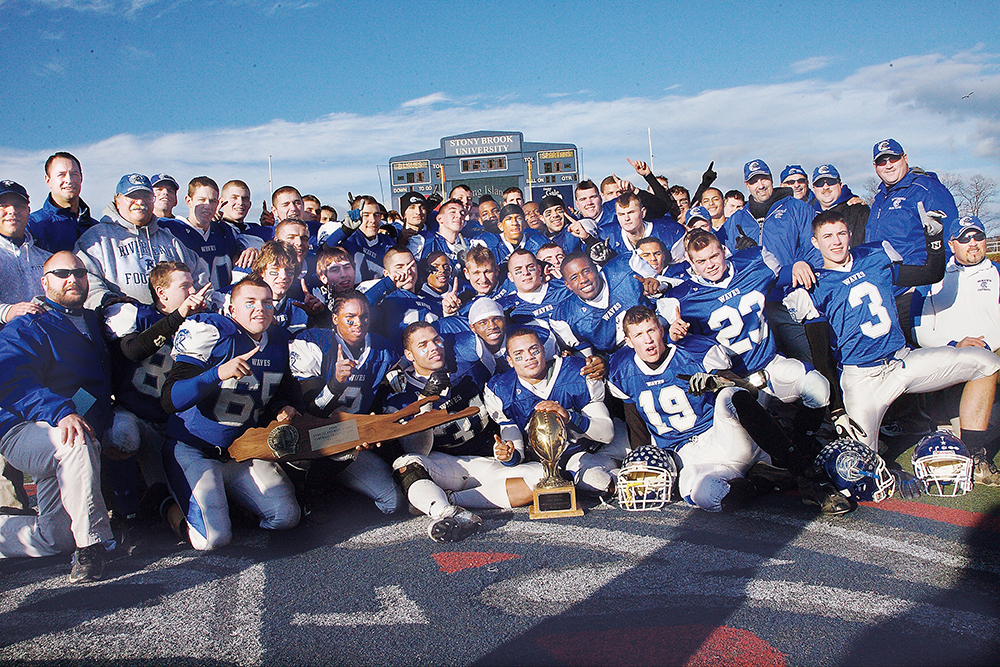 Top photo caption: The Blue Waves celebrate the Long Island Championship win on Nov. 29, 2008. (Credit: Garret Meade)