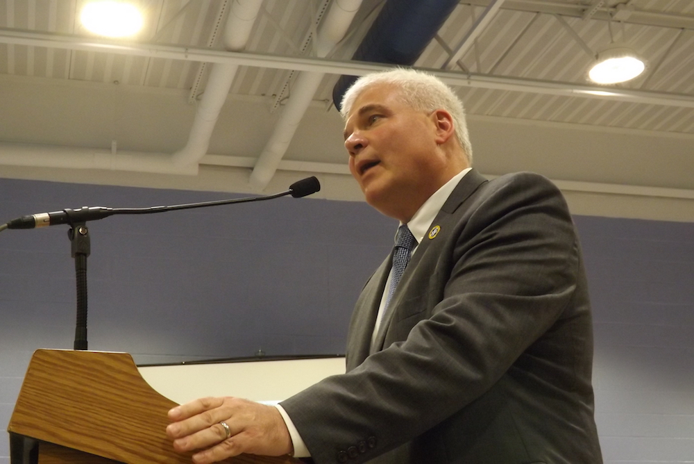 Photo caption: Superintendent Gerard Poole talked about school safety at Tuesday’s meeting. (Kate Nalepinski photo)