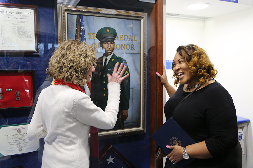 Ms. Lewis was one of a dozen people who spoke at the ceremony to remember Pfc. Langhorn, who posthumously earned the Medal of Honor, the most prestigious military decoration, as well as the Purple Heart. On Jan. 15, 1969, Pfc. Langhorn threw his body onto a grenade to save the lives of fellow soldiers, several of whom had already been injured during a mission to recover the bodies of two pilots whose helicopter was shot down by enemy fire.