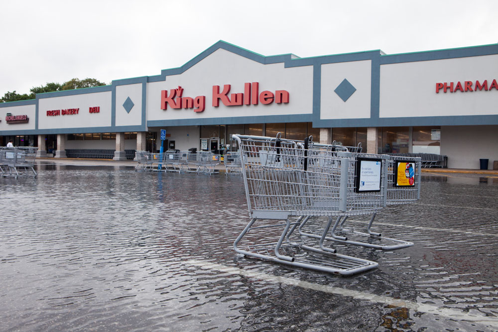 Photo caption: The King Kullen parking lot in Cutchogue pictured after a storm. (Credit: Katharine Schroeder/file)