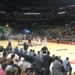 Photo caption: Moments before tip-off last Sunday of the Atlantic 10 men’s basketball championship at Barclays Center in Brooklyn. (Credit: Joe Werkmeister)