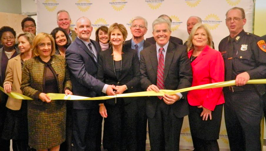 Photo caption: Suffolk County Executive Steve Bellone cuts the ribbon on the new center. (Credit: Family Service League)