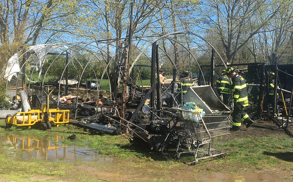 Firefighters from the Jamesport, Riverhead and Mattituck fire departments responded to the scene on Main Road shortly before 10 a.m. An employee at Colorful Gardens reported the fire, according Jamesport Chief Gary Faucon, who added that the shed was engulfed in flames when he first got there.