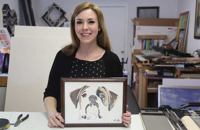 They’ll come in with all different kinds of artwork — photographs, paintings, pastels — and from there, we help them in their selection of choosing a mat, a frame. We help them choose different types of glass. Anything we can do to compliment their piece.