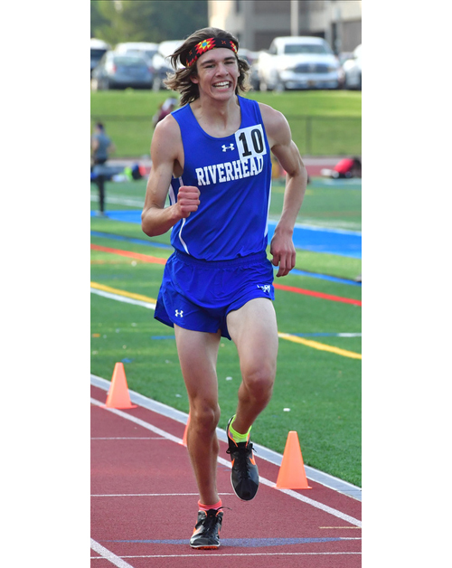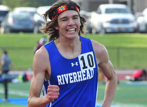 Photo caption: Riverhead senior Ryan Carrick missed tying a school record in the 3,200 meters by 55/100ths of a second. (Credit: Robert O’Rourk)