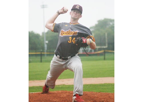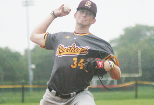 Photo caption: Riverhead Tomcats starter Brian Hendry (2-1, 2.57 ERA) gave up three hits in four scoreless innings against the Southampton Breakers. (Credit: Bob Liepa)