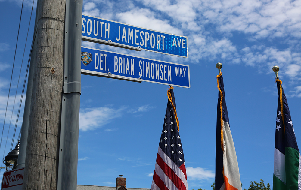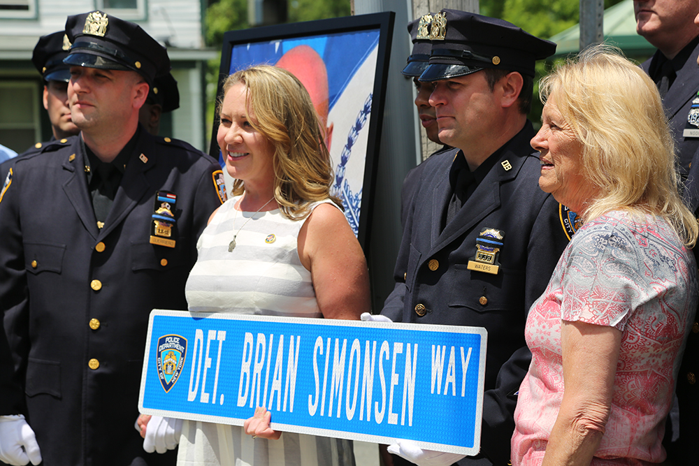 Supervisor Laura Jens-Smith and NYPD Police Commissioner James O’Neill both spoke during the ceremony along with NYPD Chief of Detectives Dermot Shea and Det. Simonsen’s friend Mike Lojko.