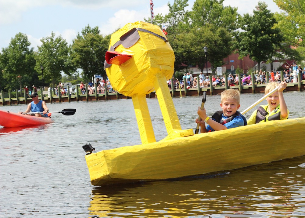 The only materials permitted are cardboard, duct tape, water-based glue and latex paint, but that hasn’t hindered creativity of contestants in years past. “The Hammock Boat” and “The Riverhead Rowing Gnomes” were just some of the innovative designs from last year’s race.