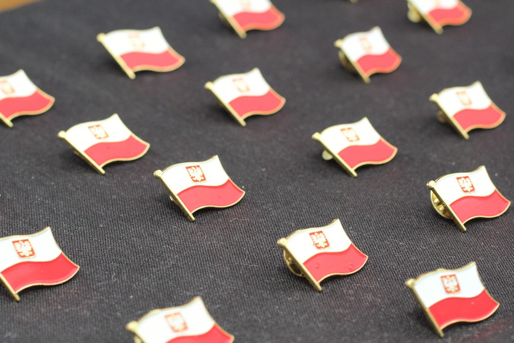 Polish heritage pins for sale on Pulaski Street. (Elizabeth Wagner photo)