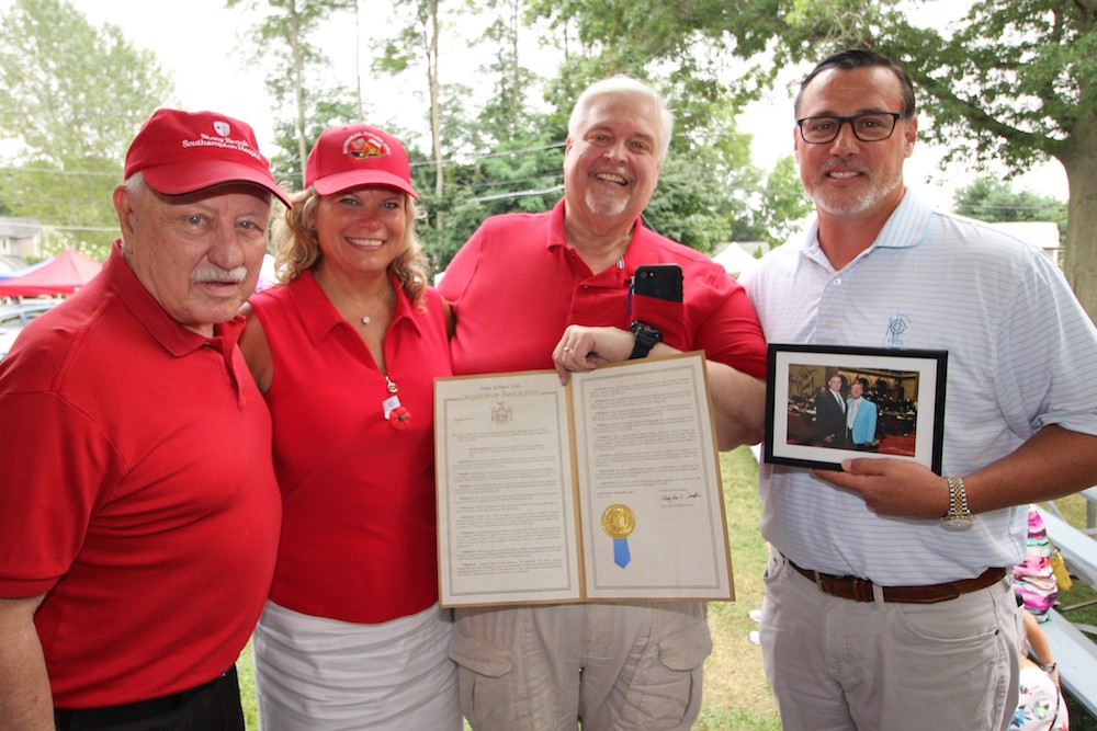 New York State Sennator Kenneth LaValle, Riverhead Town Councilwoman Jodi Giglio, Polish Town Civic Association’s Robert Gottschalk, and New York State Assemblyman Anthony Palumbo with Governor Cuomo’s resolution declaring October 2019 Polish-American Heritage Month in the State of New York, as well as an autographed photo of Palumbo with Jimmy Sturr, the Polka King. (Elizabeth Wagner)