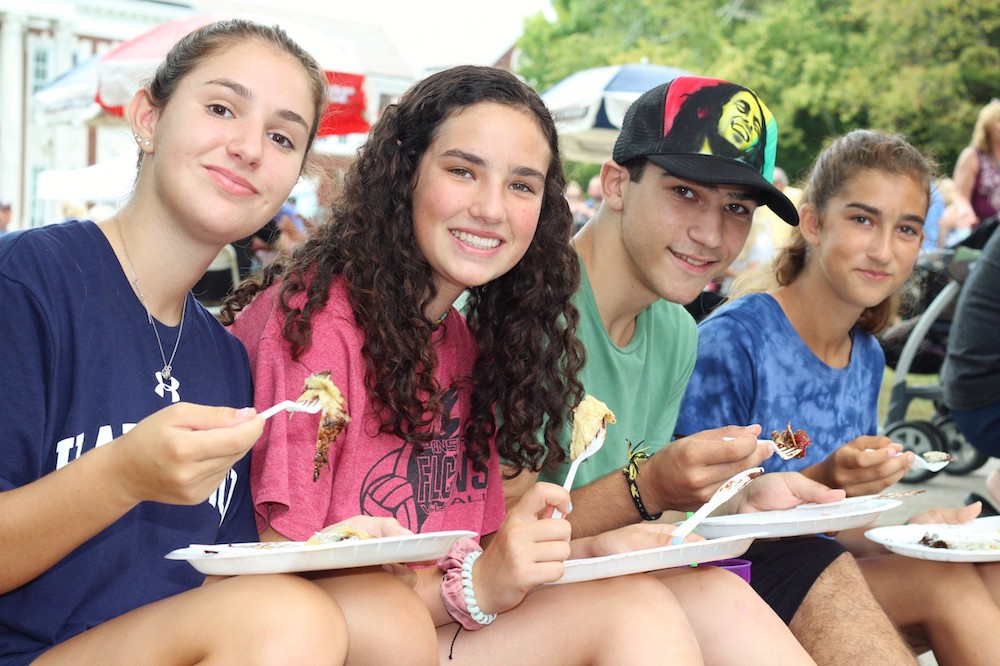 Eating crepes: Leah Hergott of Smithtown with Yardley, PA’s Grace Sobey, Ben Sobey, and Julia Sobey. (Elizabeth Wagner photo)