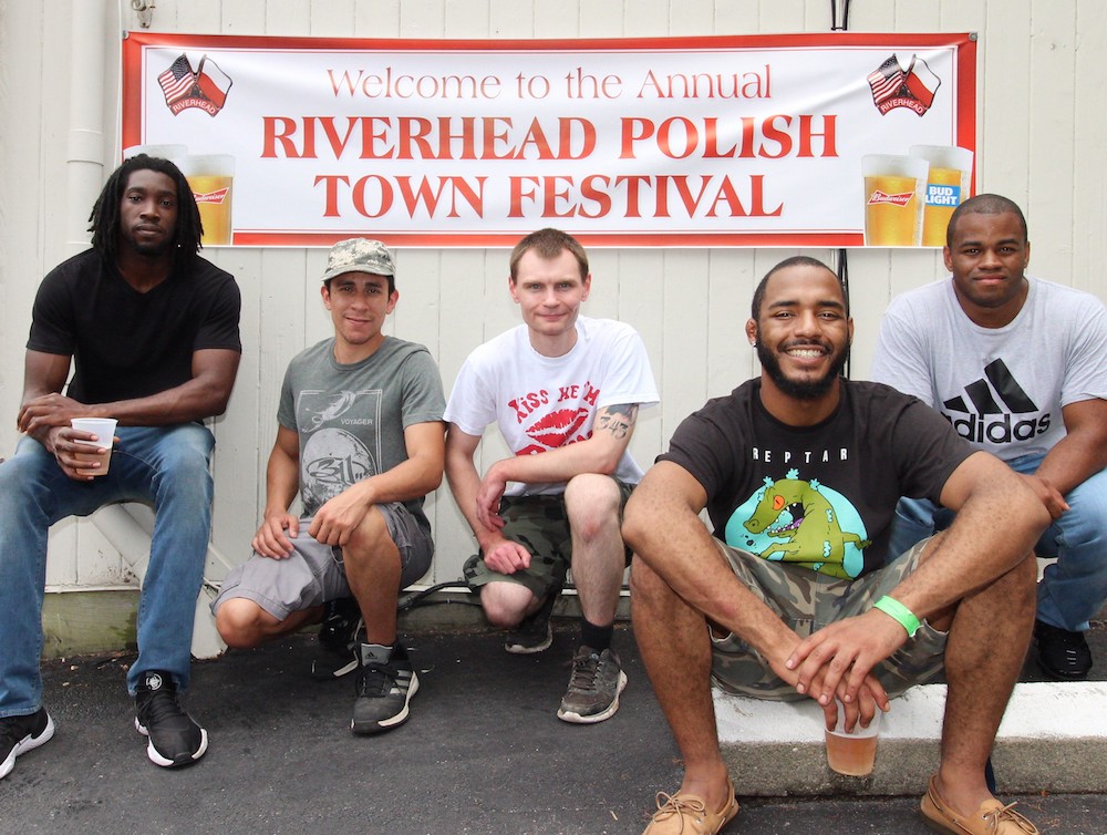 Riverhead native James Mckay of Farmingville leads Central Islip’s Lenox Edwards, Adam Rivera, Dondre Bailey, and Julian Ming on a tour of the Polish Town Fair. (Elizabeth Wagner photo)