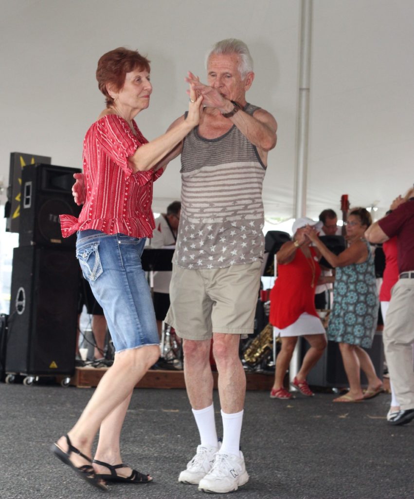 Carol Dabovich of Bethpage, Steve Majercak of Clinton, NJ dance to TKO’s polka. (Elizabeth Wagner photo)