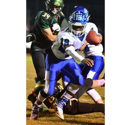 The first half was a busy one for the Riverhead defense. Ward Melville ran 37 offensive plays in the half while Riverhead had 15. For the game, Riverhead’s Tyreek Earl Parker (two sacks) and Lamarion Hopkins made eight tackles each.