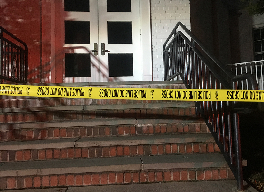 Top photo caption: Police tape blocked off the front of the building. (Credit: Joe Werkmeister)