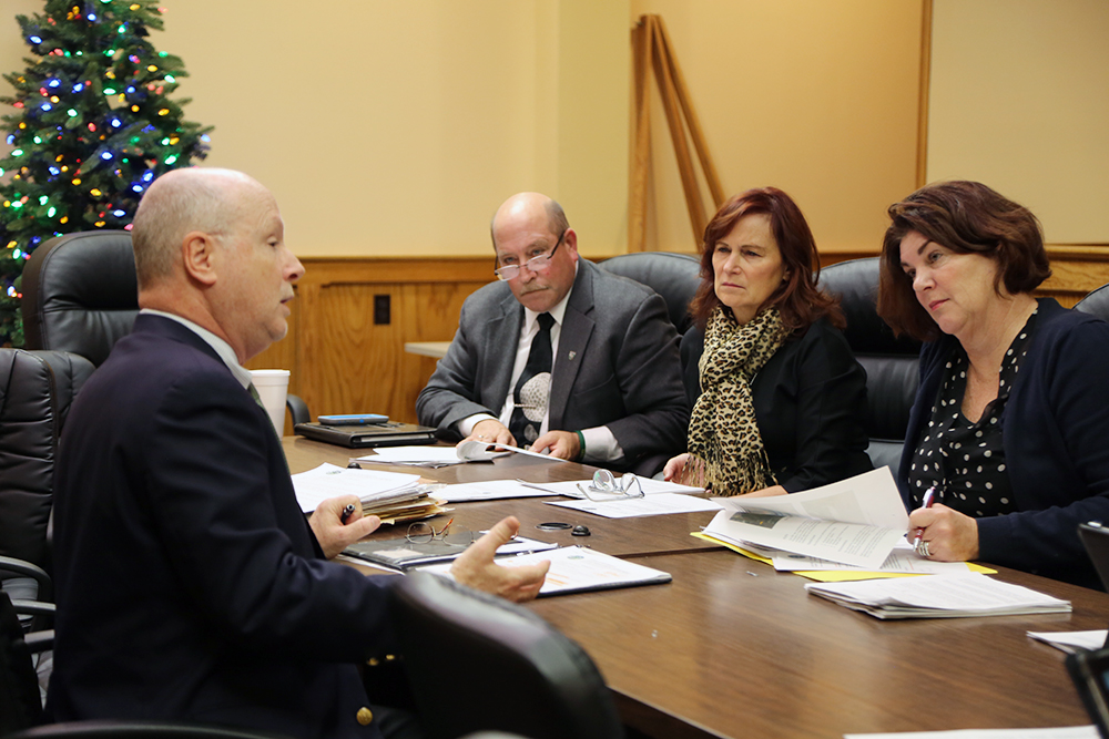 Photo caption: Jeff Murphree speaks with board members at Thursday’s work session. (Credit: Kate Nalepinski)