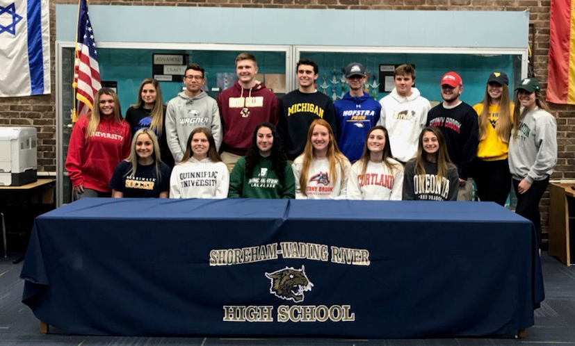 Shoreham-Wading River athletes who intend to continue playing their sport in college were recognized at a signing ceremony last month. A total of 16 athletes, who play lacrosse, soccer, baseball, field hockey and crew, were honored.