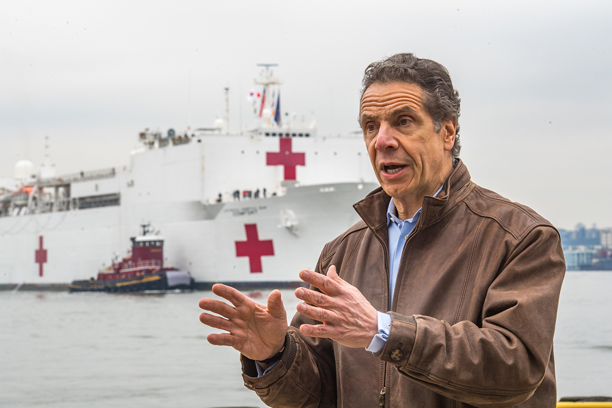 Earlier Monday, Gov. Cuomo welcomed the USNS Comfort to New York Harbor. The 1,000 bed hospital ship will not treat COVID-19 patients but will help relieve strained New York hospitals and be used as “overflow,” Mr. Cuomo said.