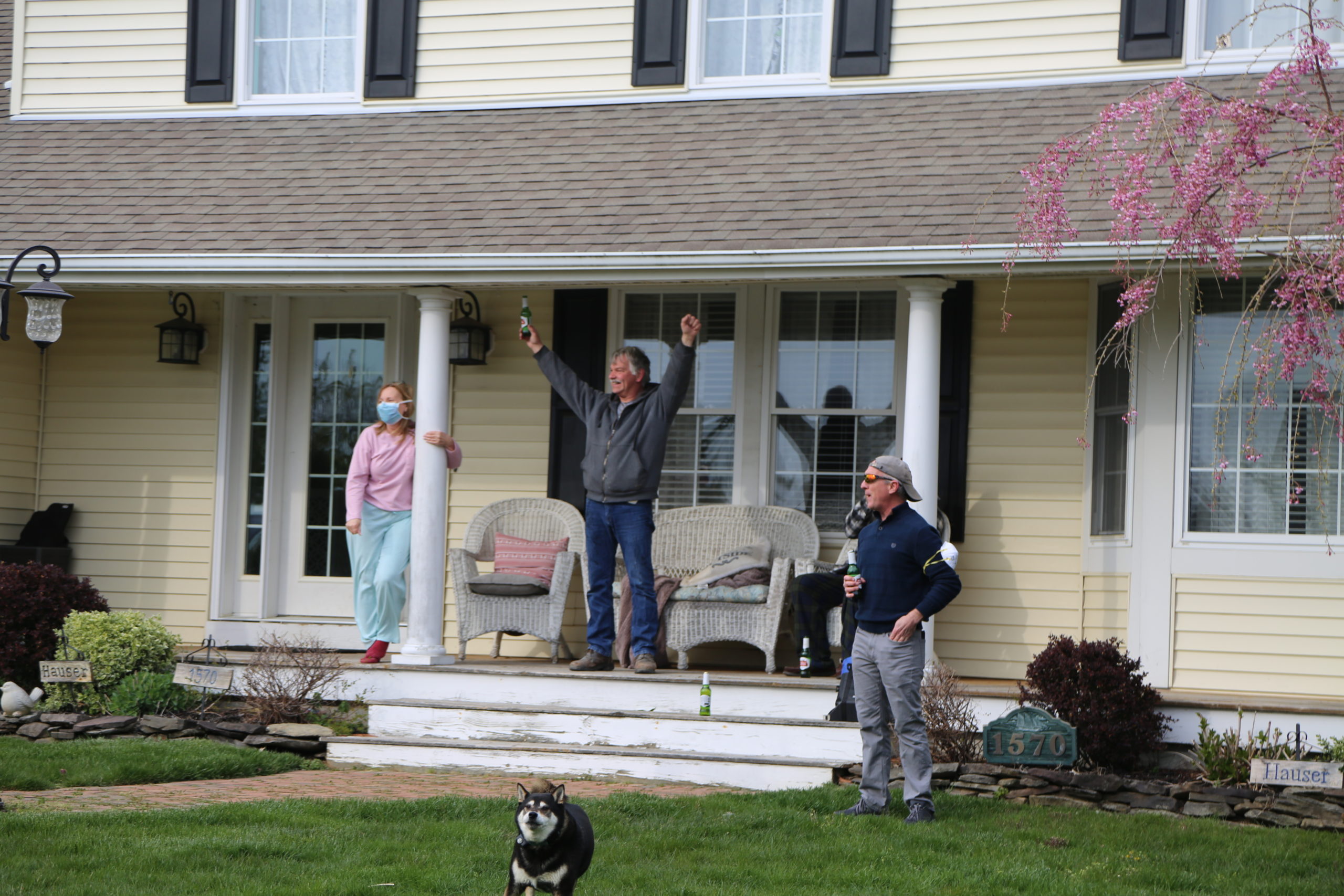 She may have been wearing a surgical mask, but there’s no doubt Ms. Hauser was smiling underneath as the caravan passed by their Gabriella Court home.
