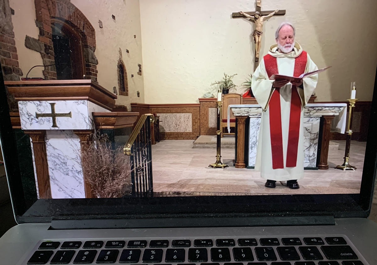 Many houses of worship have been live streaming sermons and prayer readings that congregants, or anyone else, can see on their laptops or other devices. That will continue this week. In the case of Sacred Heart Parish in Cutchogue, Monsignor Joe Staudt has been alone at the altar on Saturdays, doing the reading, giving his homily and then posting it on the parish website and Facebook.