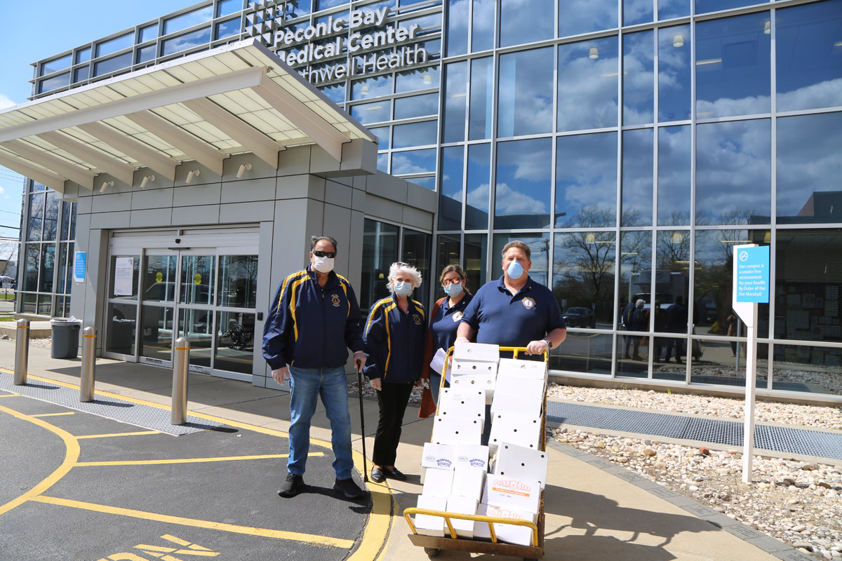 At Peconic Bay Medical Center in Riverhead on Wednesday, a team of volunteers from the Southold Lions Club unpacked an ice cream truck filled with 500 assorted ice cream bars to give to hospital staff. Before arriving at PBMC, the ice cream truck made a stop at Stony Brook Eastern Long Island Hospital in Greenport, where a group from the Mattituck Lions Club did the same.