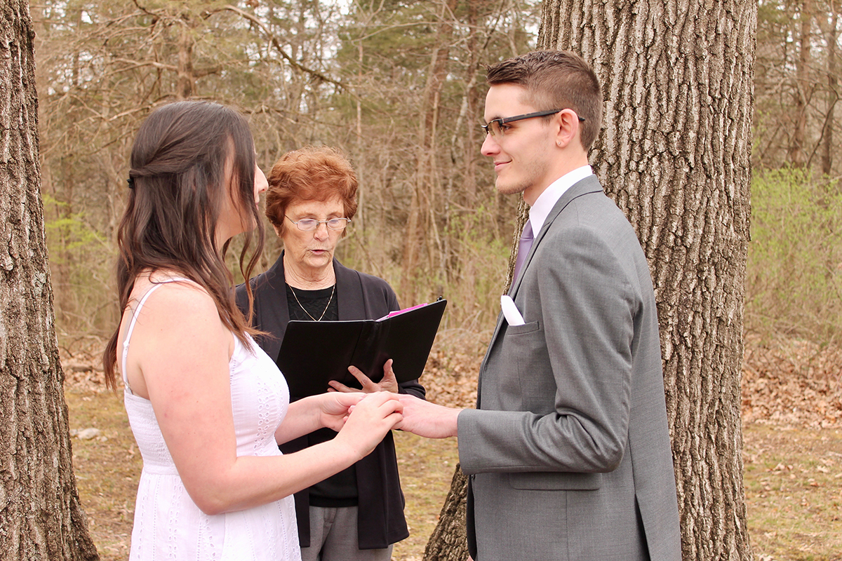 On Wednesday, March 18, the couple snagged a marriage license in a nearby town, found an officiant and tied the knot in a Harrisonburg, Va., park with local friends as witnesses. The bride’s best friend, present at the ceremony, FaceTimed family members so they could watch the ceremony.