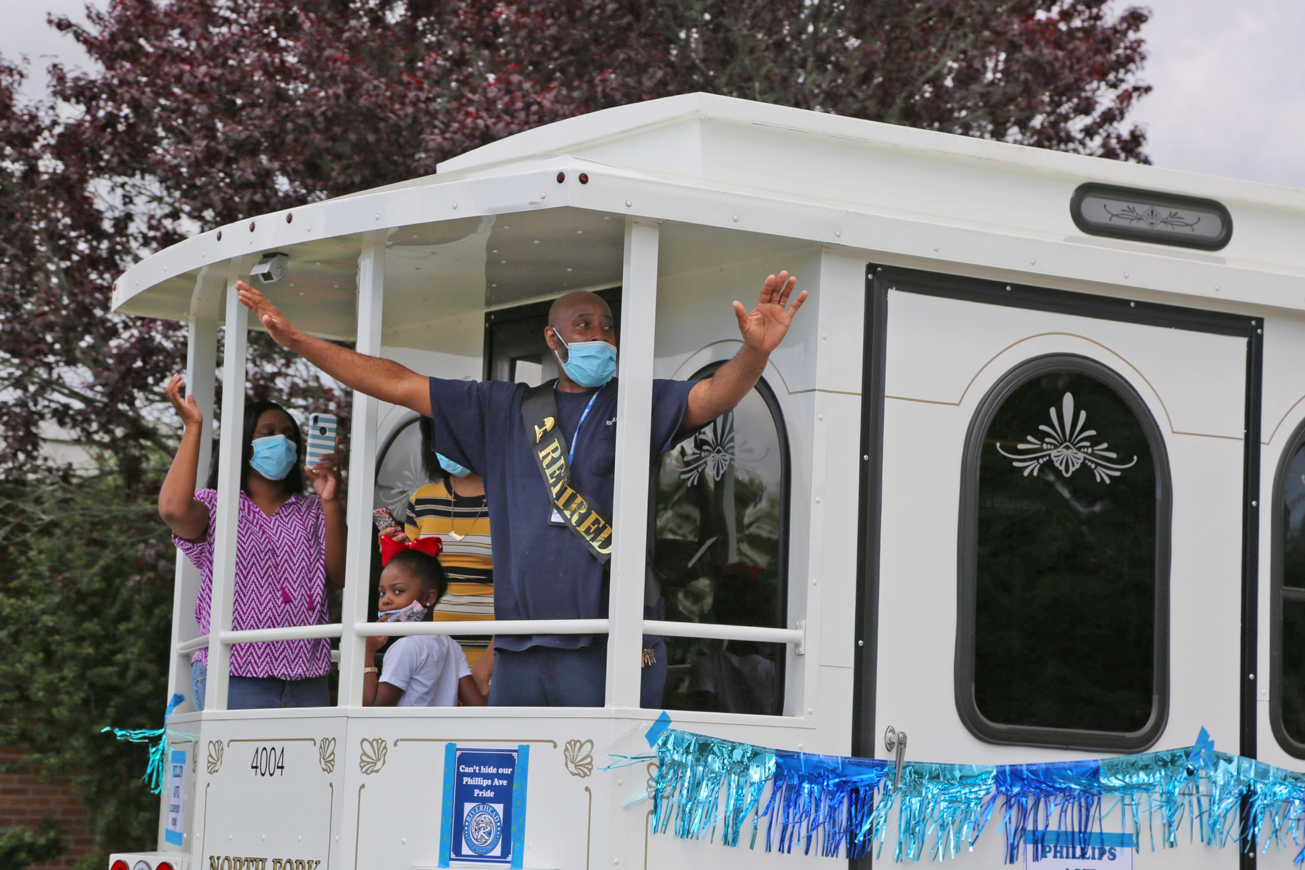 During the parking lot celebration, Phillips Avenue principal Debra Rogers spoke about the unusual end of the school year.