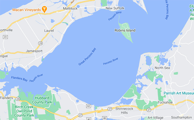 Southold police said that the body was found in Southampton Town waters, just west of Robins Island.