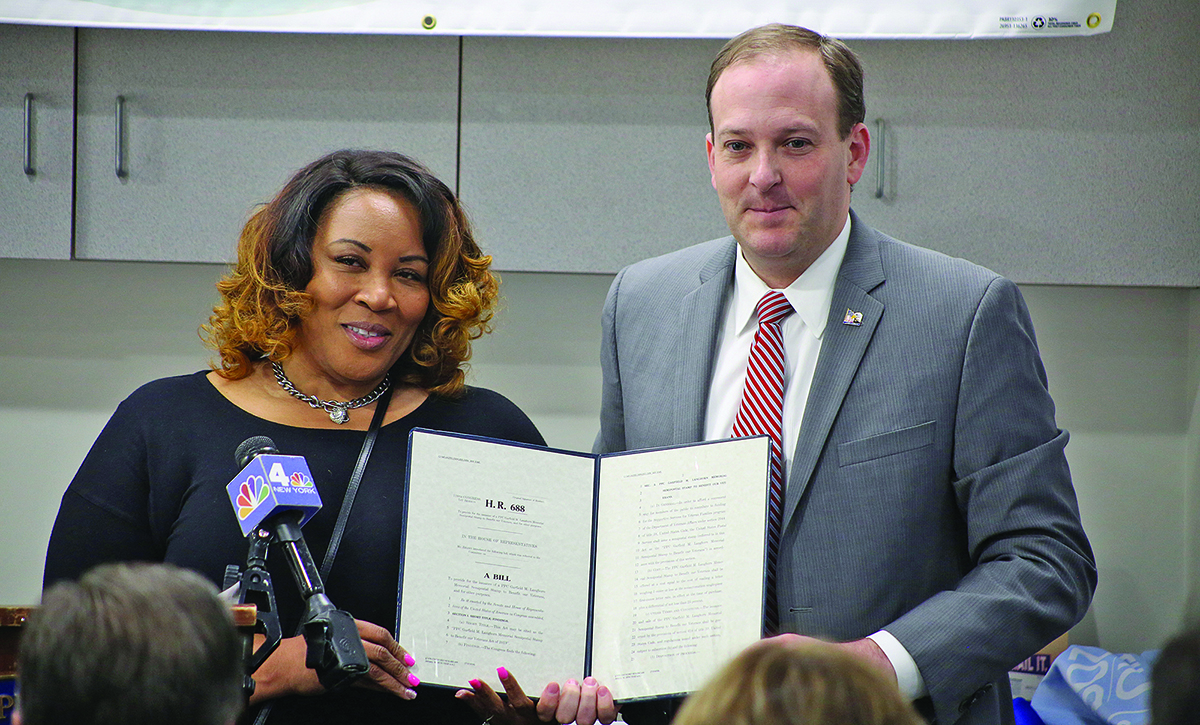 “There is no better way to honor Pfc. Langhorn than remembering his sacrifice and continuing to give back to our nation’s brave servicemen and women,” Mr. Zeldin said. “It is only fitting that this legislation to honor his memory also helps provide additional funding to veterans in need.”