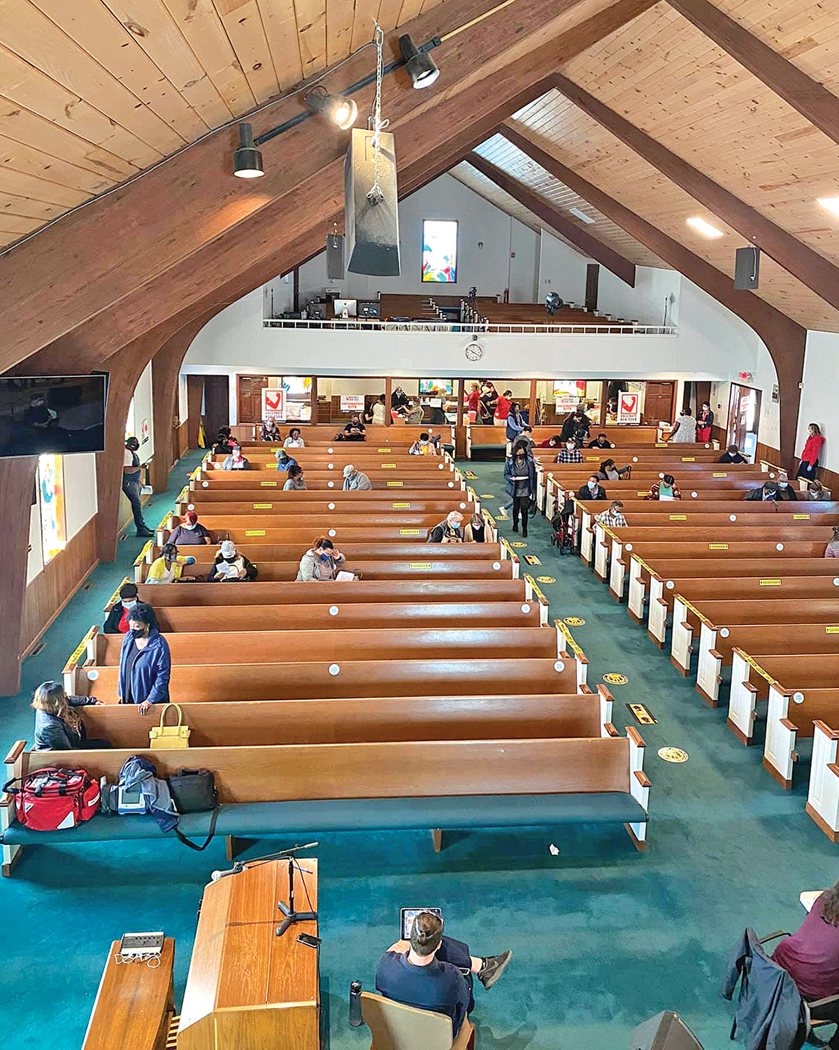 The Rev. Liggon said the church offered an ideal space to host the pop-up since it’s large enough to accommodate different areas that Stony Brook Medicine requires. They set up areas for registration, vaccine administering and an observation area.