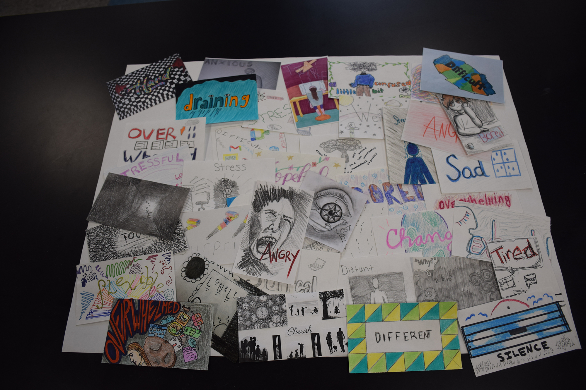 Ms. Dellaposta said there were responses that took a more positive outlook with words like “hopeful,” “happy” and “fun.” A handful of teachers and staff members submitted cards as well, with words like “challenge” and “flexible.”