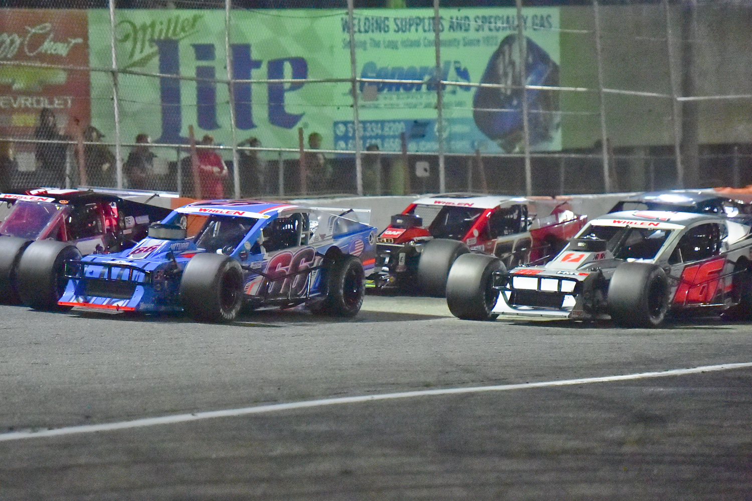 A scheduled 20-lap Legend Race Car main event was shortened to 13 laps because of the late hour and multiple caution flags on a damp night. When the race was deemed official, Anthony Marsh of Riverhead, a three-time winner in 2021, had his fourth career win. Jim Sylvester of East Islip was second, with defending champion George Tomko Jr. of Aquebogue third.